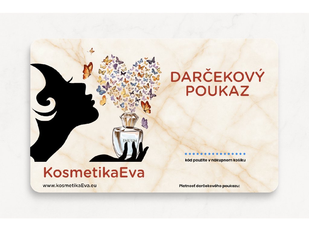 Darujte možnost volby. Dárkové poukazy KosmetikaEva.eu jsou ideálním způsobem, jak potěšit každého, kdo miluje kvalitní kosmetiku, parfémy nebo produkty pro zdravý životní styl. Namísto přemýšlení nad konkrétním výrobkem vložíte radost přímo do rukou obdarovaného – ten si může sám vybrat přesně to, co mu udělá největší radost.
