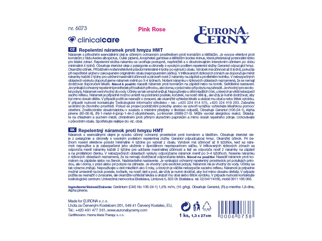 | Výrobce: | EURONA s.r.o., Lhota za Červeným Kostelcem 261, Červený Kostelec 549 41 |
