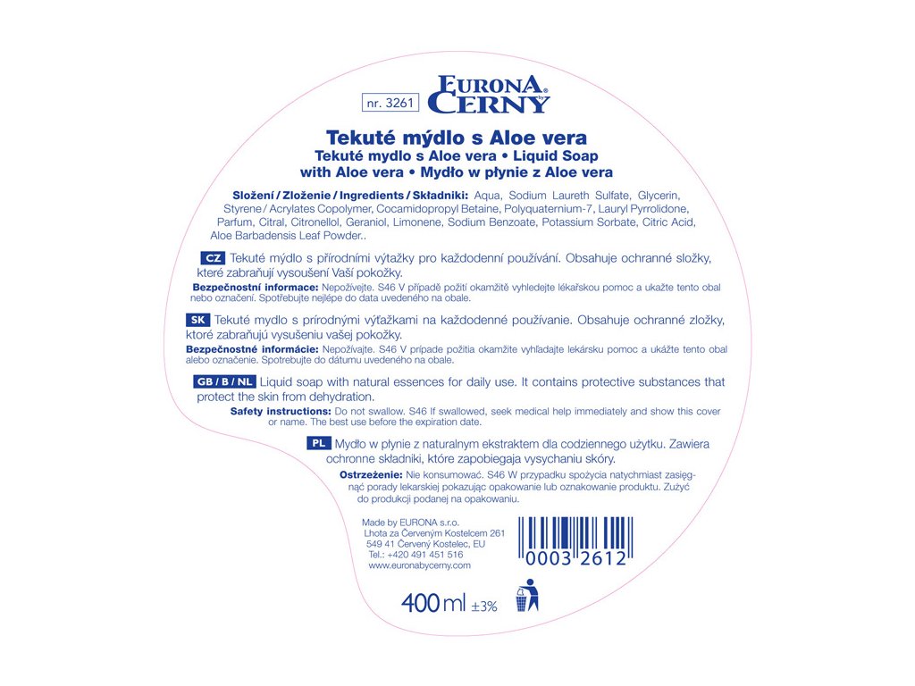 | Výrobce: | EURONA s.r.o., Lhota za Červeným Kostelcem 261, Červený Kostelec 549 41 |
