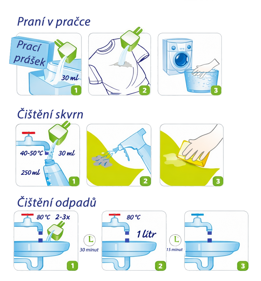 - Tento prostředek slouží k pravidelné šetrné údržbě a dezinfekci sifonů a odpadů.